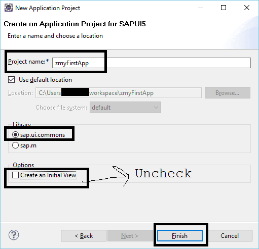 - Uncheck the create initial view checkbox.
